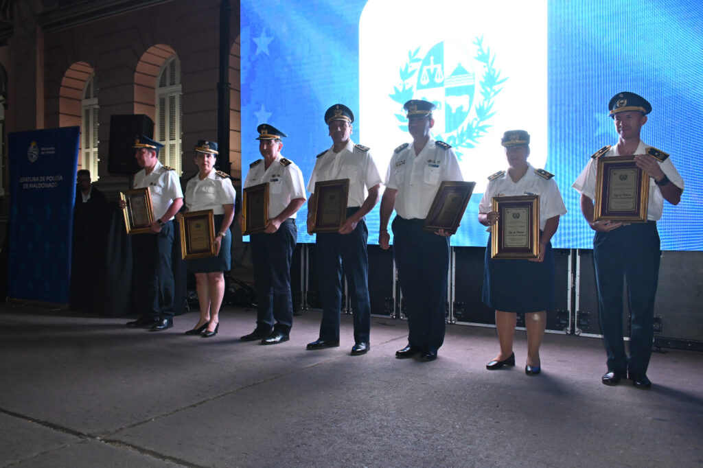 Además, se otorgaron reconocimientos por Laboriosidad Funcional a 158 funcionarios, Menciones Especiales a 150 funcionarios y distinciones por procedimientos puntuales. En tanto, el “Premio Jefe de Policía” se entregó a los cinco jefes de Zonas Operacionales, a la Directora departamental de Violencia Doméstica y Género de Maldonado y al Jefe de Estado Mayor y Ayudantía, por su desempeño en tareas de conducción y gestión.