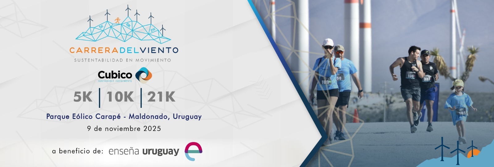 La quinta edición de la “Carrera del Viento Cúbico”, evento que une deporte, naturaleza y energía renovable, se realizará el domingo 9 de noviembre en el Parque Eólico Carapé, con el apoyo de la Intendencia de Maldonado (IDM).