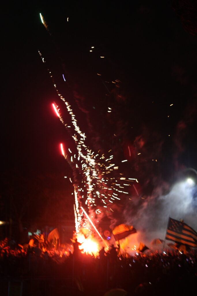 Ni siquiera la garúa intermitente que cayó en algunos momentos detuvo la celebración, que contó con banderas, fuegos artificiales y un ambiente de fiesta popular que se vivió intensamente en toda la ciudad.