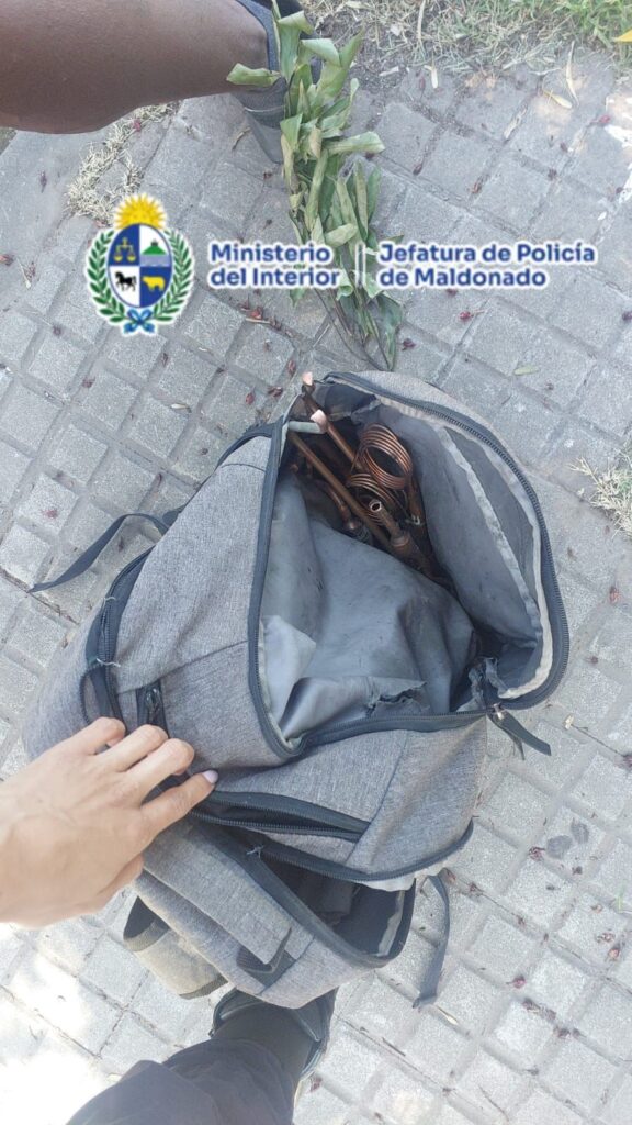 El hombre fue identificado como D.S.P.R., de 38 años, quien llevaba en sus manos un radiador de aire acondicionado. Al efectuarle un registro, se le incautó una mochila con herramientas y diversos trozos de tubos de cobre, compatibles con los de un equipo de aire acondicionado.