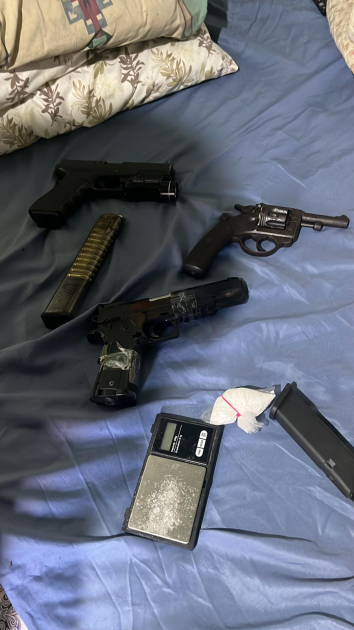 En una tercera vivienda ubicada en barrio Sarubbi, se incautaron dos armas de fuego, municiones, un cargador extensible, sustancia blanca, una balanza de precisión y celulares, quedando detenido un hombre de 32 años.