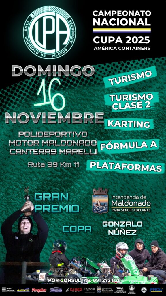 El Club Uruguayo de Pilotos Autocross (CUPA) regresa a Maldonado con su séptima fecha oficial, disputando el Gran Premio Intendencia de Maldonado – Copa “Gonzalo Núñez”.