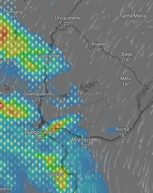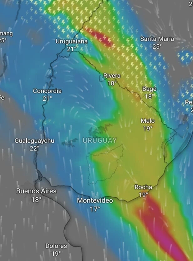 Desde la noche del viernes 24 y hasta la mañana del sábado 25, las tormentas fuertes en Uruguay podrían intensificarse.
