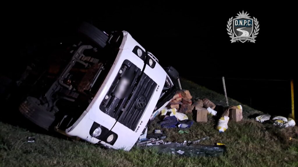El hecho se registró sobre las 03:10. El camión circulaba en sentido sur–norte y, por causas a establecer, despistó. Luego quedó sobre su lateral derecho en la faja natural del margen oeste.